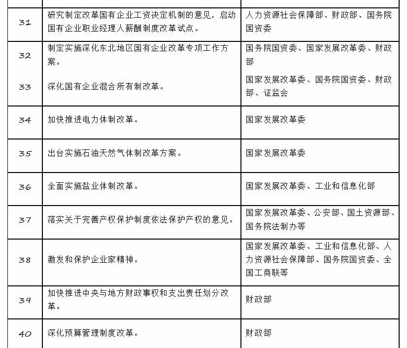 2017年经济体制改革重点任务分工表